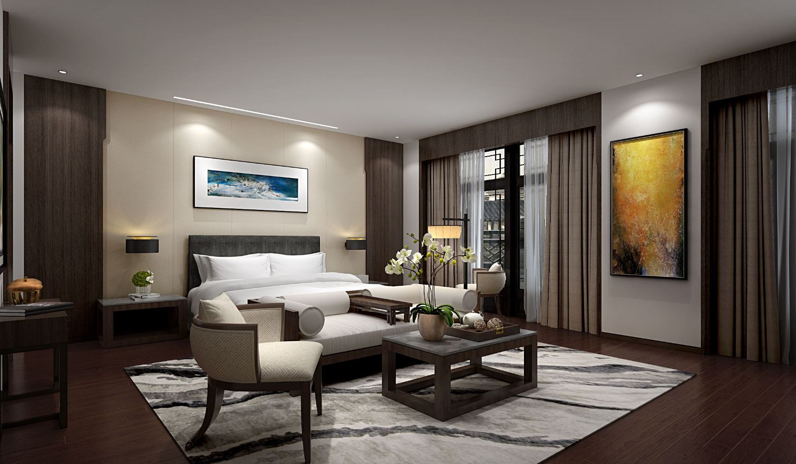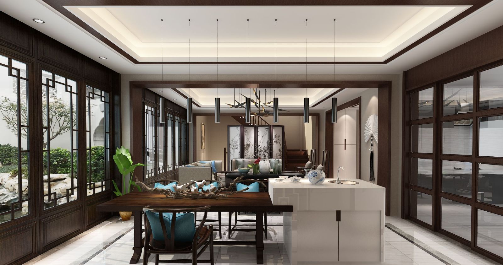 項(xiàng)目整體住宅布局分為以合院住宅為核心的兩大片區(qū):基地中部布置合院住宅,分為東中西三區(qū),依托錯(cuò)位曲折的雙十字空間軸線縱橫展開并相互關(guān)聯(lián),營造層次豐富,意象鮮明的社區(qū)核心空間,并以此劃分形成數(shù)個(gè)組團(tuán),通過圍合的建筑組合營造安定宜人的鄰里空間。南側(cè)沿湖邊布置一排較大面積的合院住宅,將其打造成為園區(qū)最高端的濱湖景觀大宅。