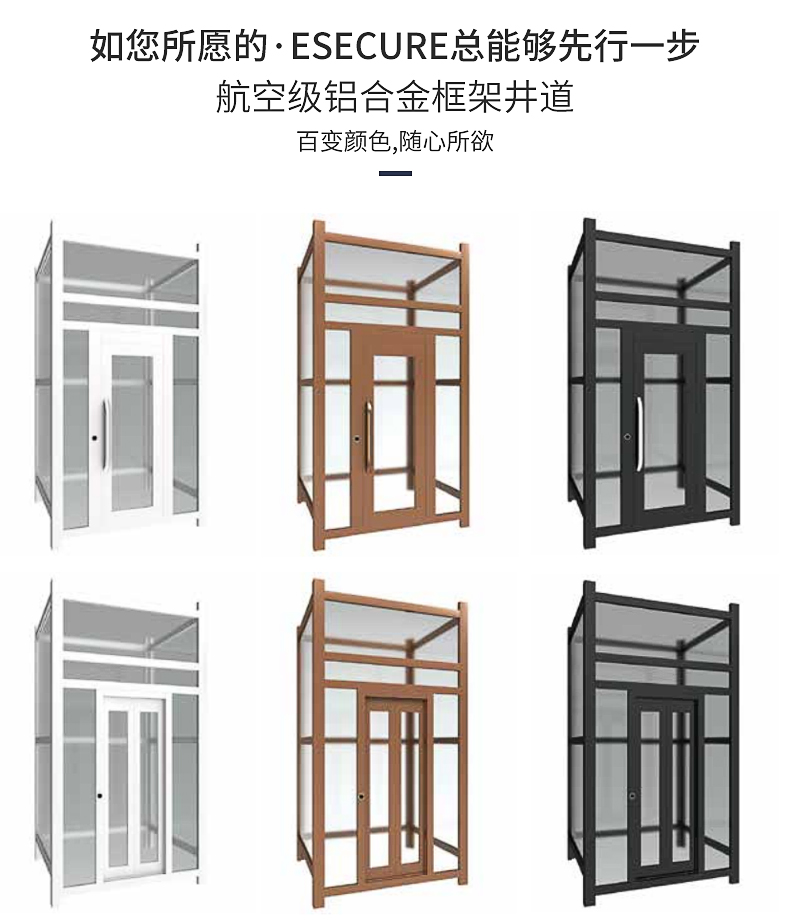 1:金色鋁合金框架井道,金色手動門