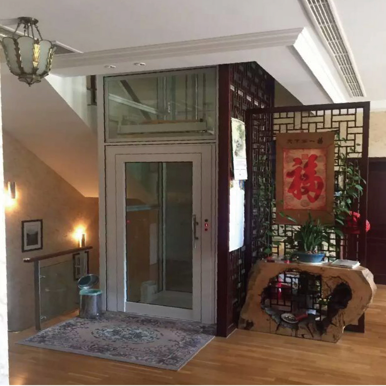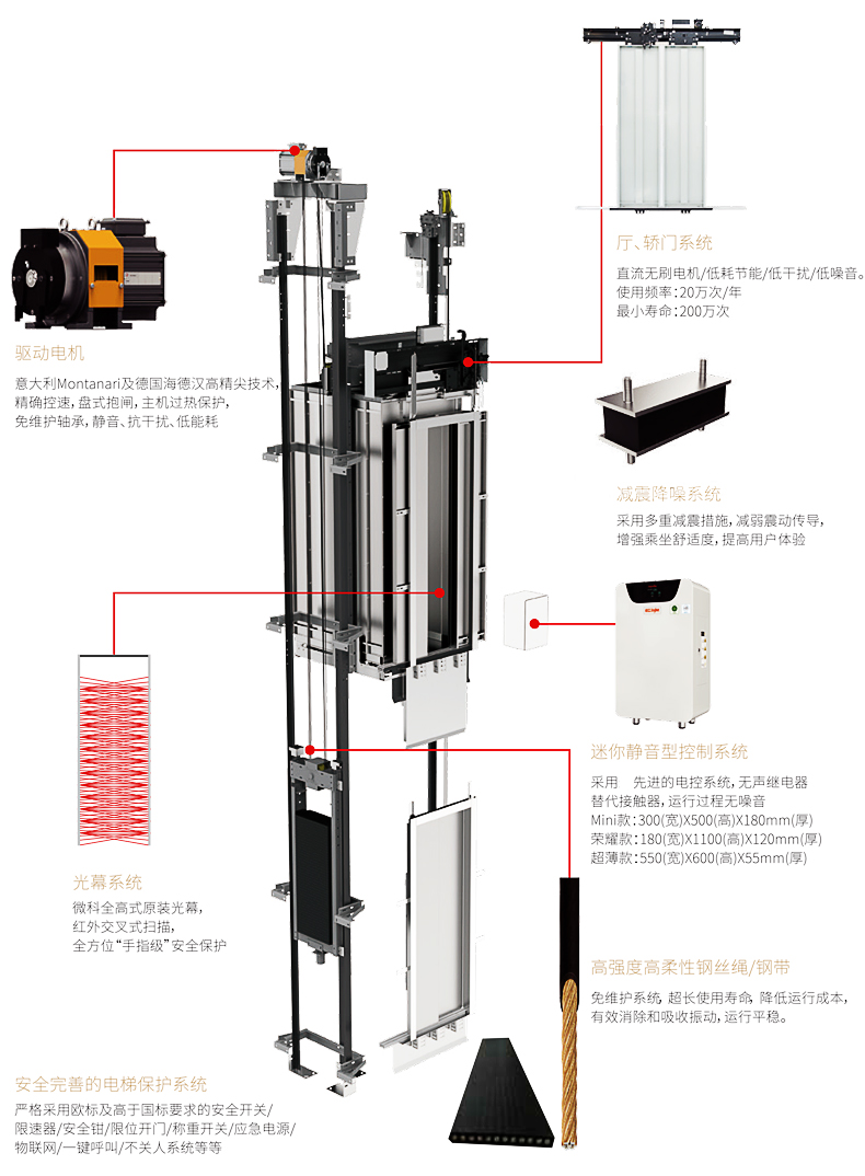 含金色鋁合金框架井道4層電梯上海地區(qū)標(biāo)準(zhǔn)配置價格: